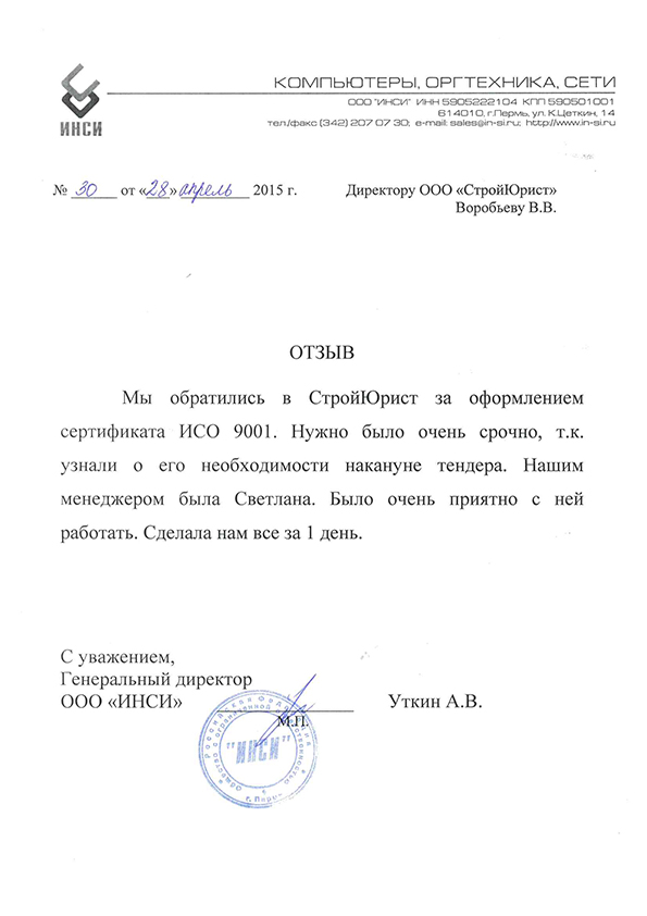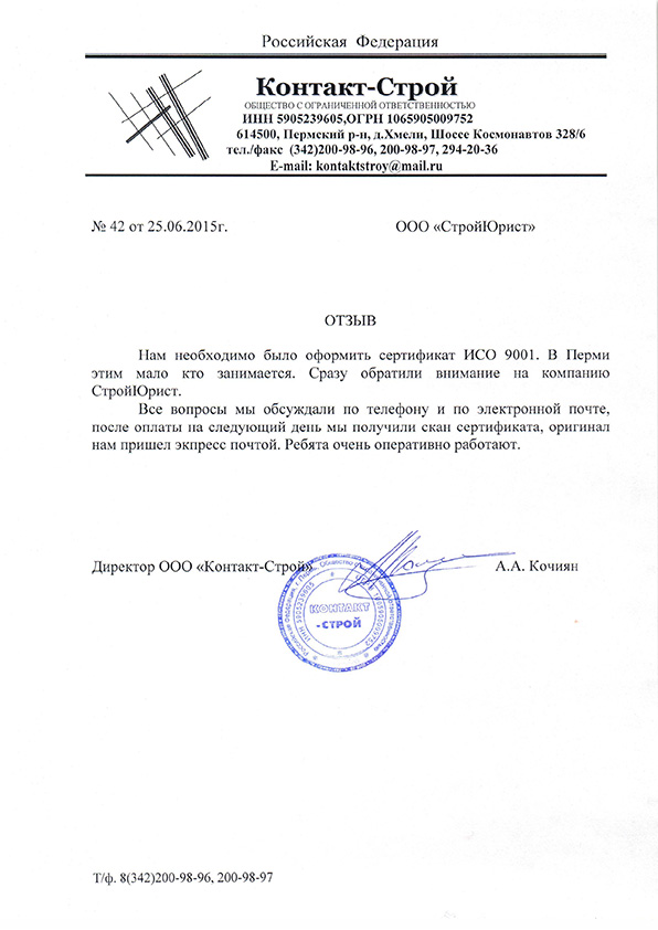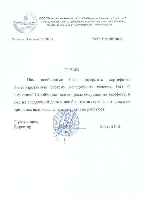Отзывы клиентов "СтройЮрист" по ISO в Анапе
