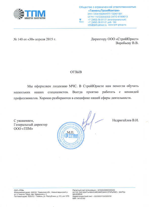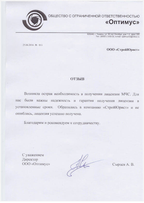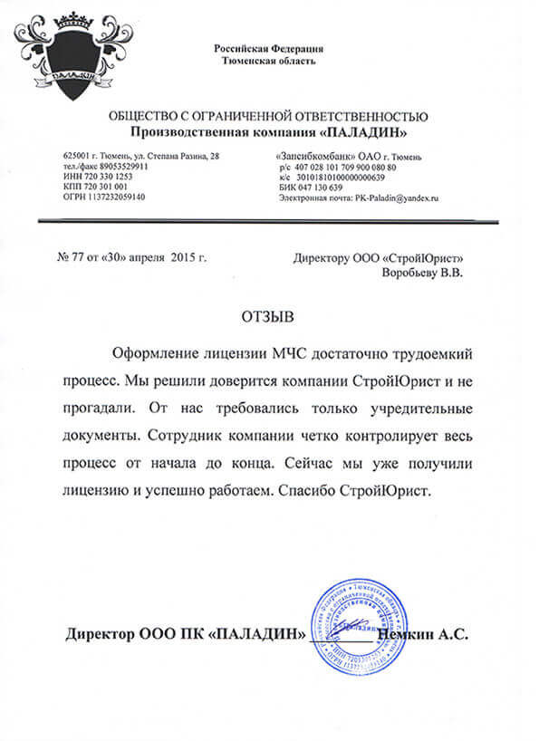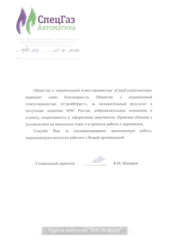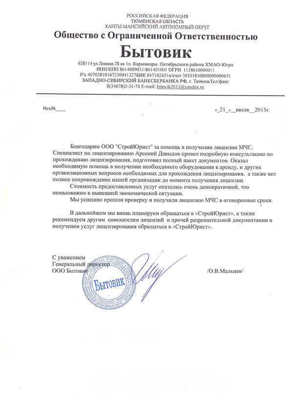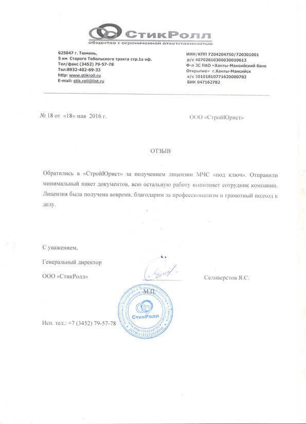 Отзывы клиентов "СтройЮрист" по лицензированию МЧС в Анапе