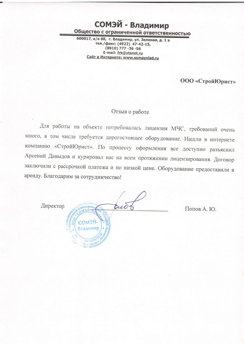 Отзывы клиентов "СтройЮрист" по лицензированию МЧС в Анапе