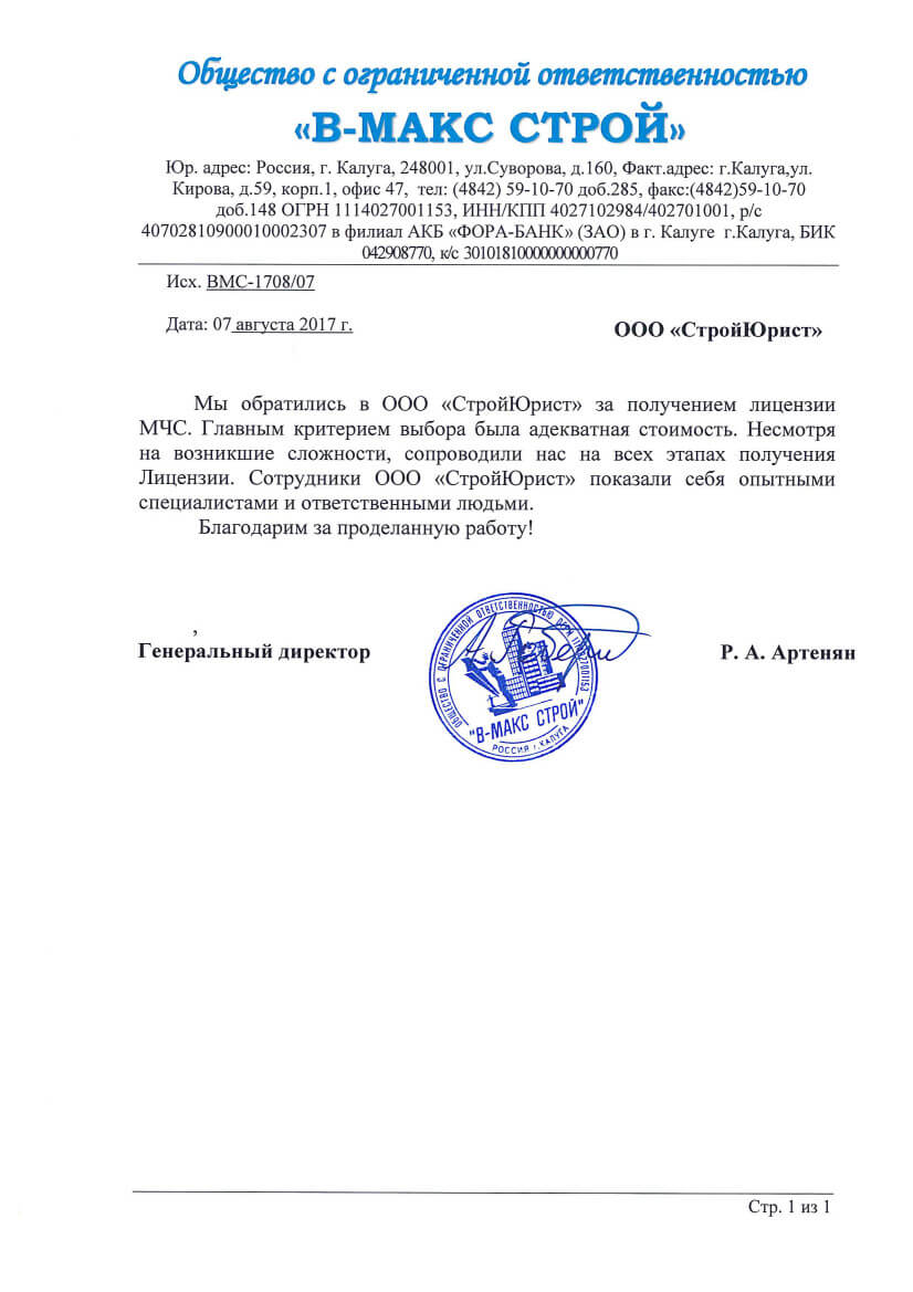 Отзывы клиентов "СтройЮрист" по лицензированию МЧС в Анапе