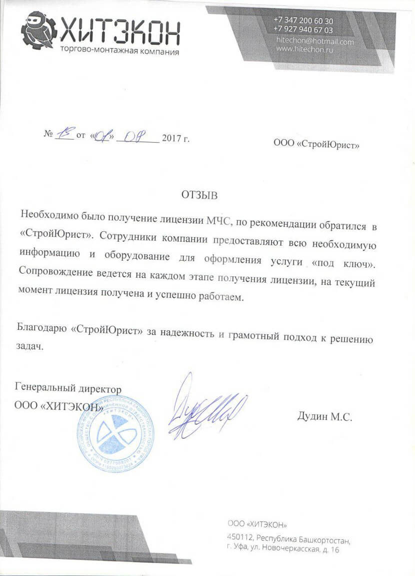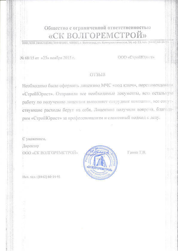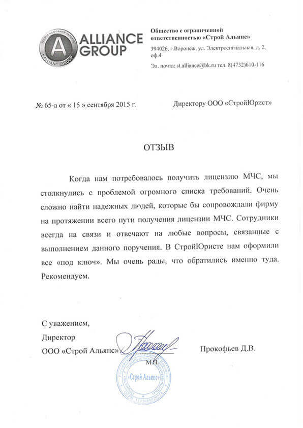 Отзывы клиентов "СтройЮрист" по лицензированию МЧС в Анапе