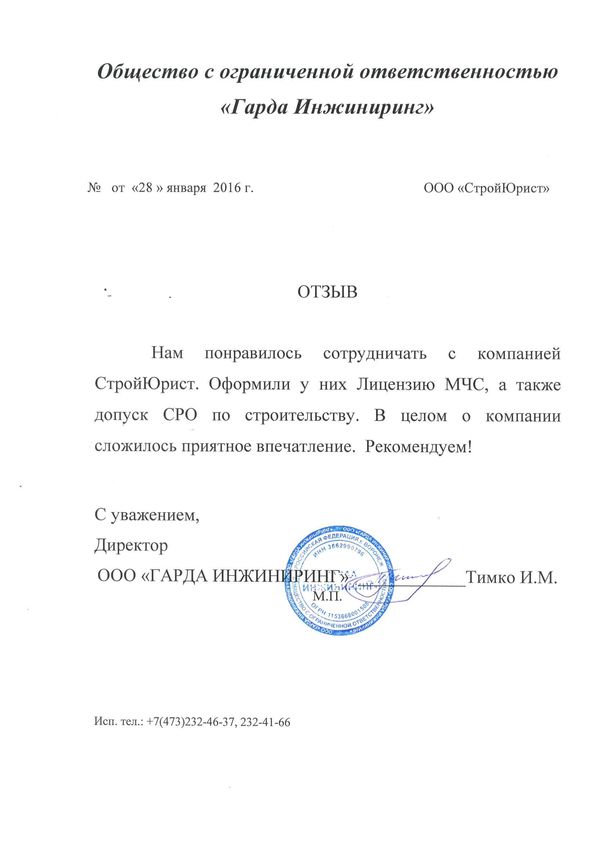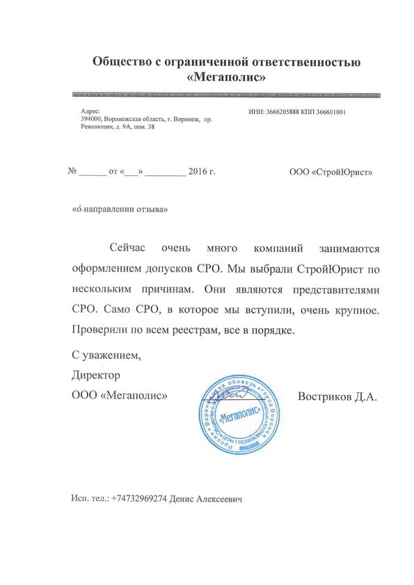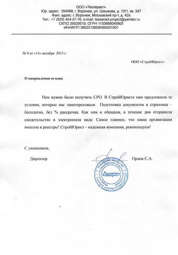 Отзывы клиентов "СтройЮрист" по вступлению в СРО в Анапе
