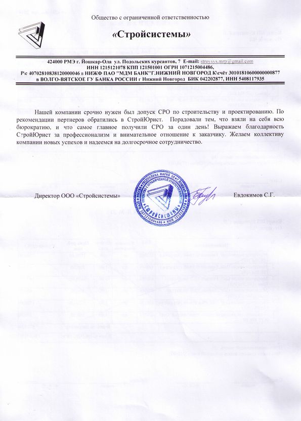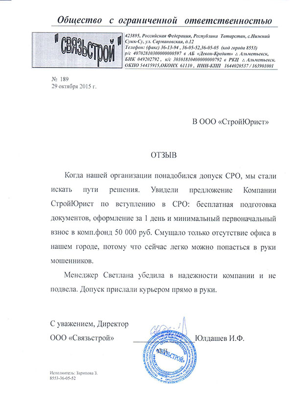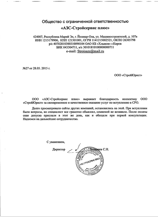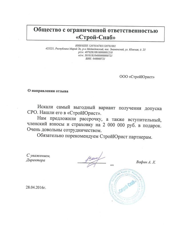 Отзывы клиентов "СтройЮрист" по вступлению в СРО в Анапе