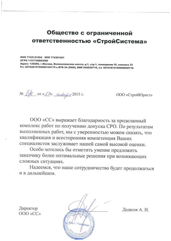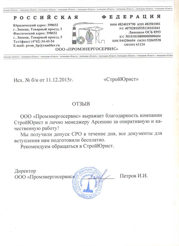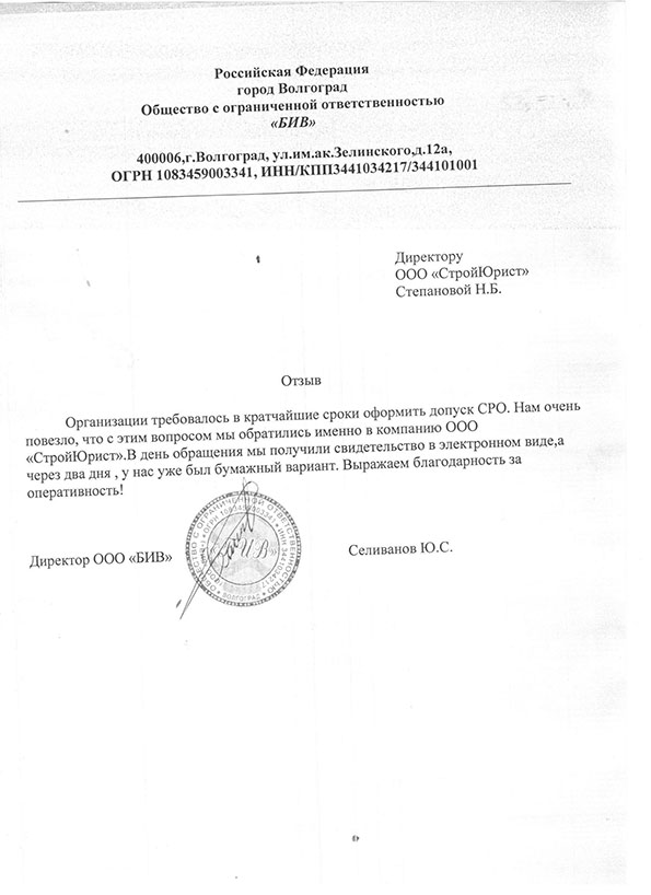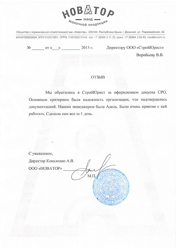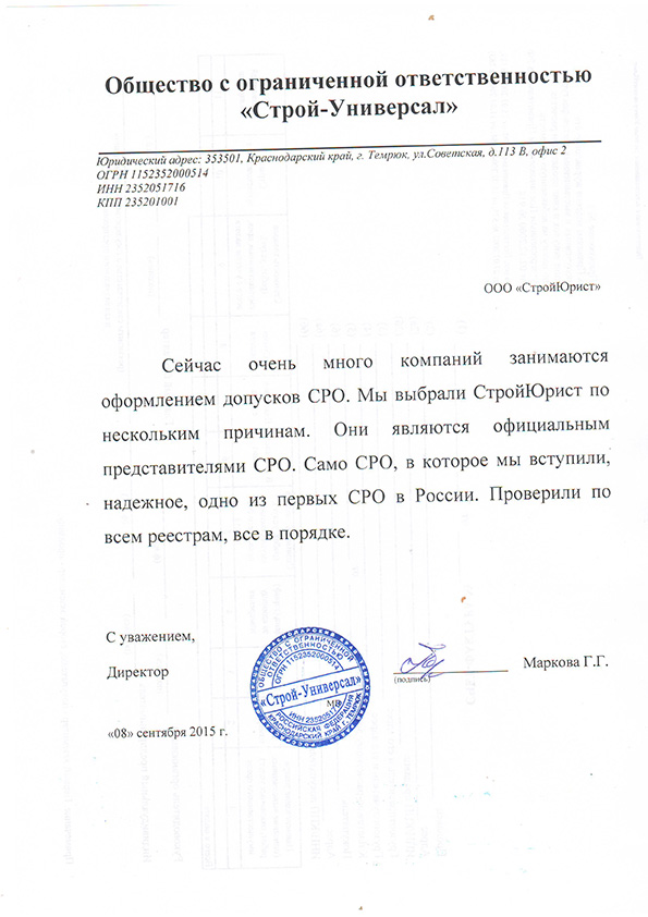Отзывы клиентов "СтройЮрист" по вступлению в СРО в Анапе