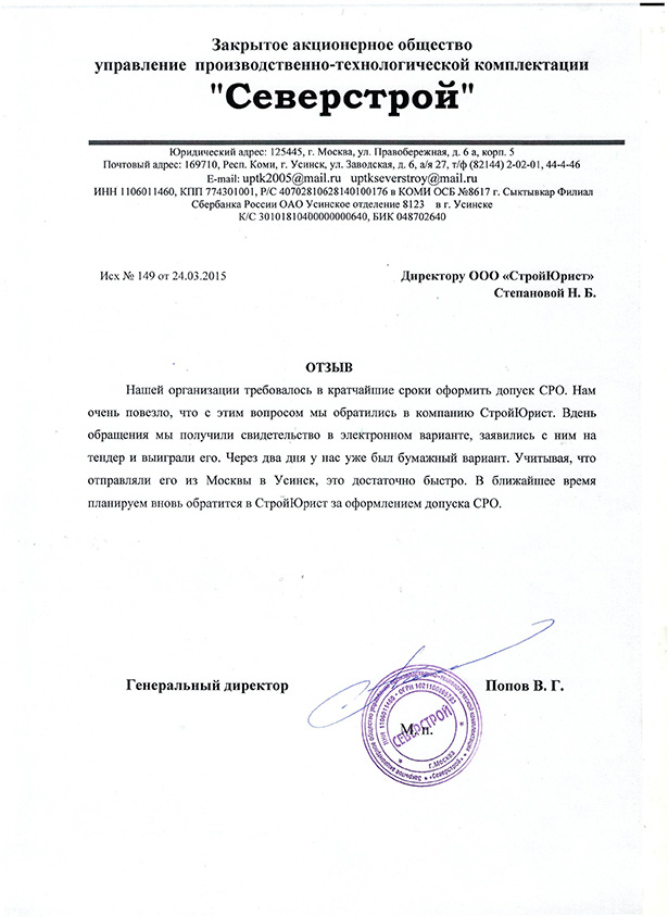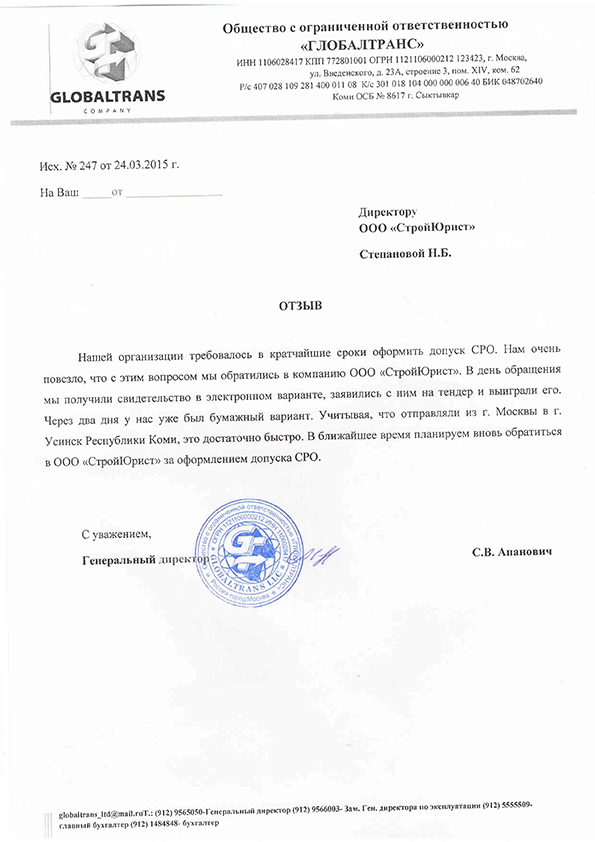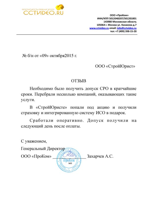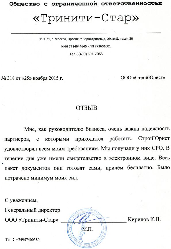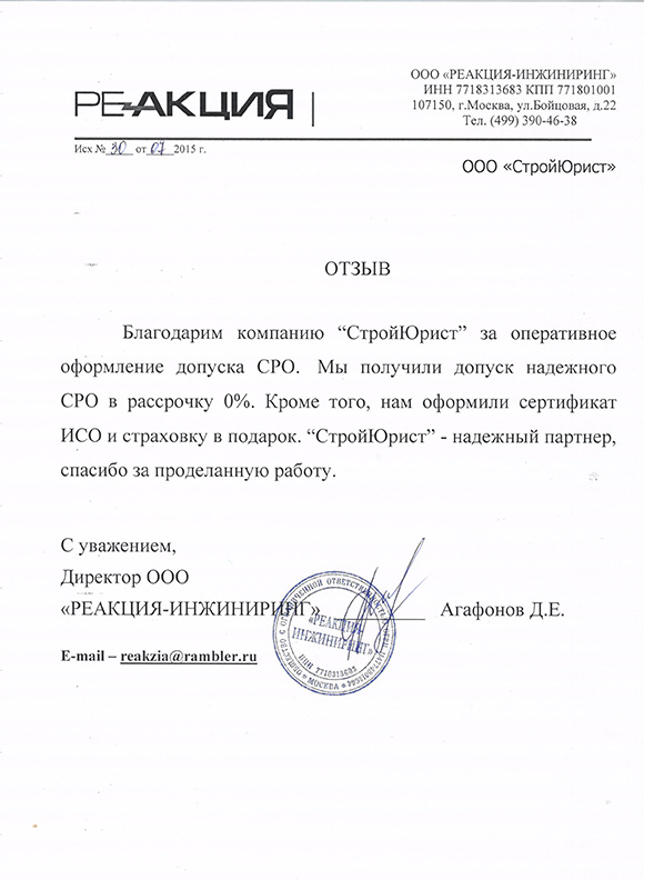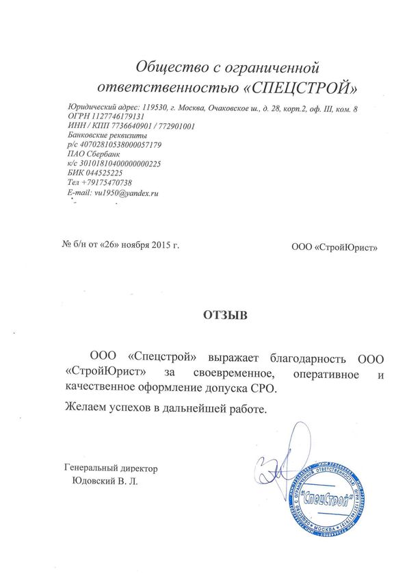 Отзывы клиентов "СтройЮрист" по вступлению в СРО в Анапе