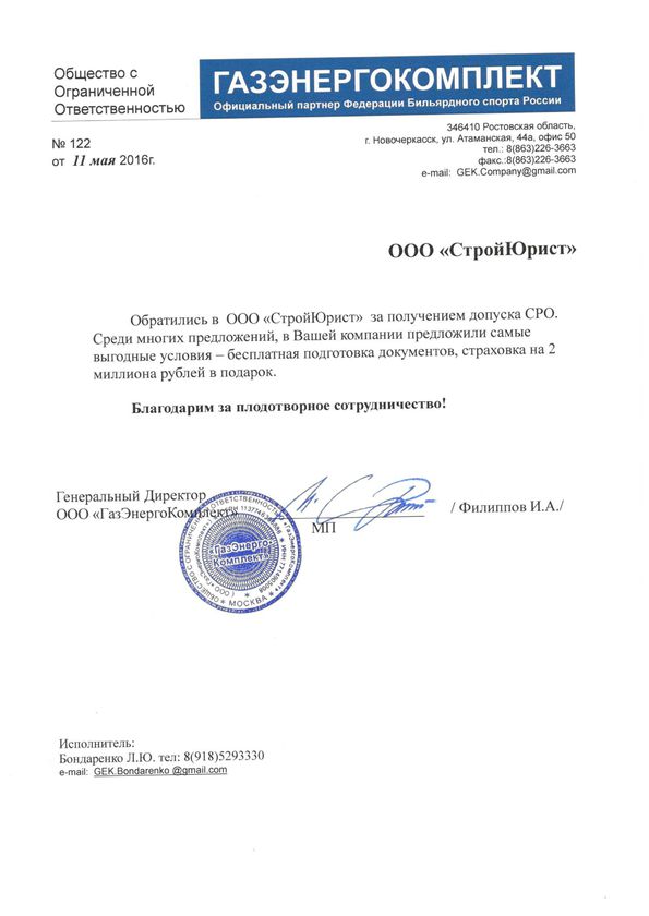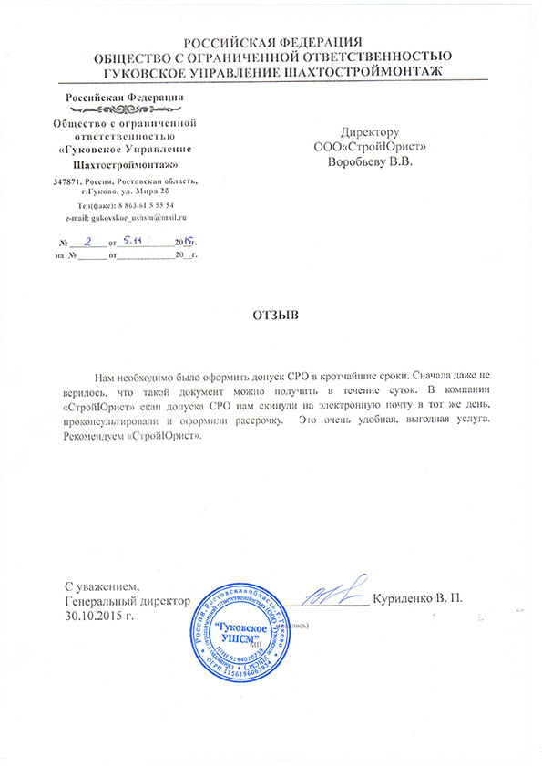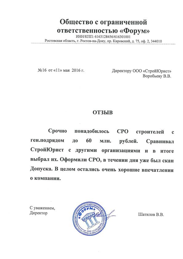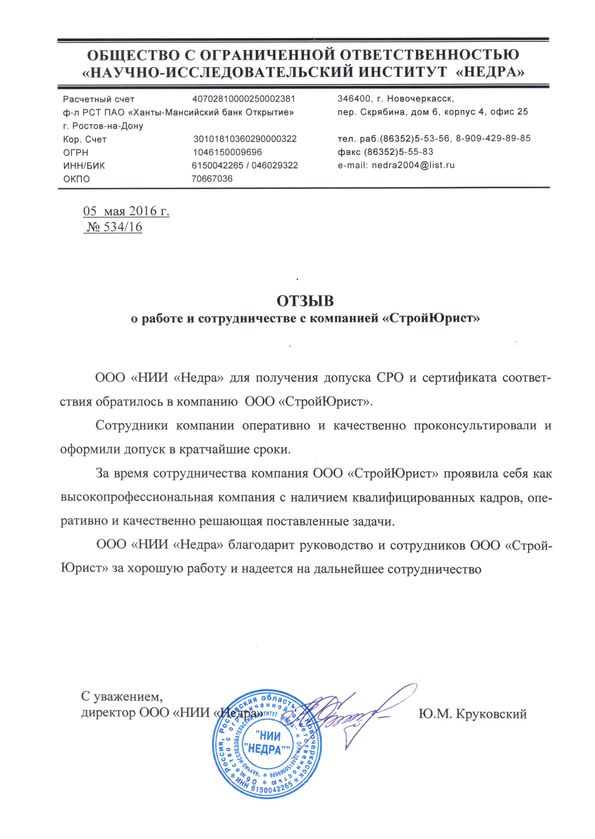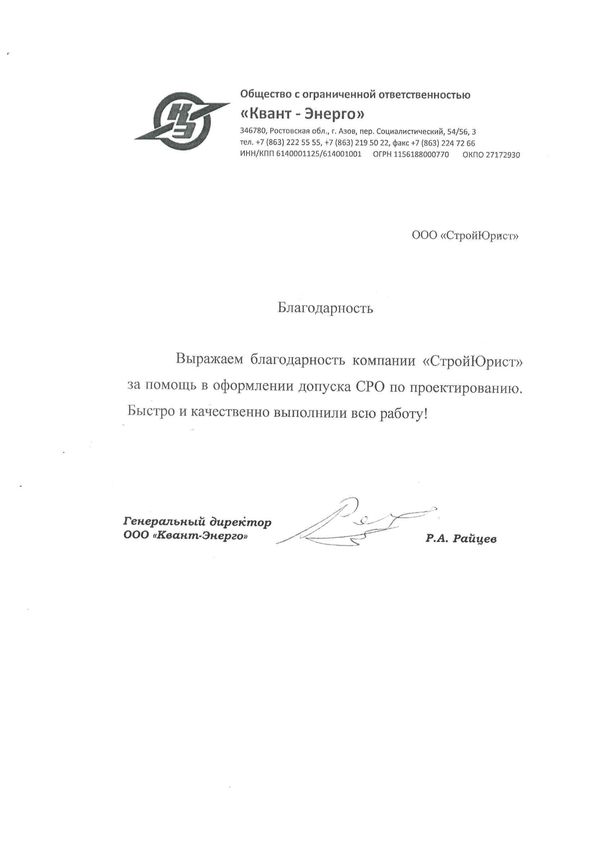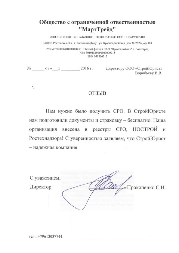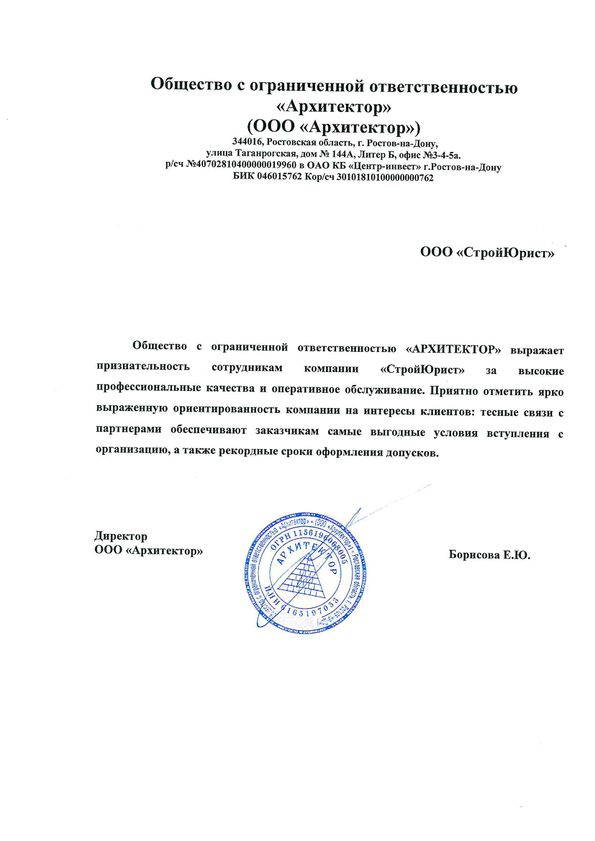 Отзывы клиентов "СтройЮрист" по вступлению в СРО в Анапе