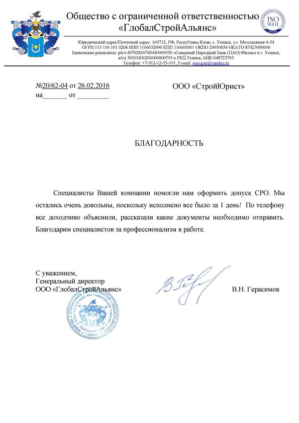 Отзывы клиентов "СтройЮрист" по вступлению в СРО в Анапе