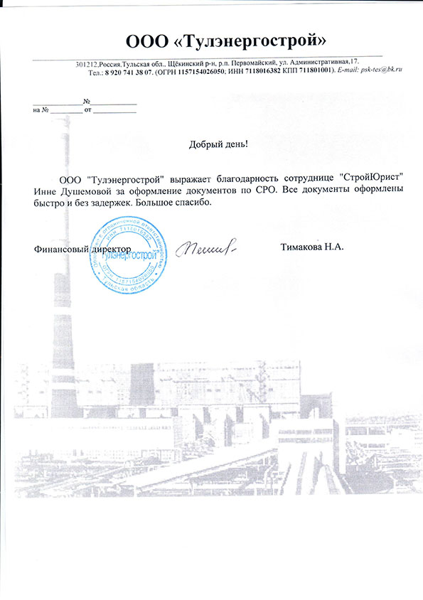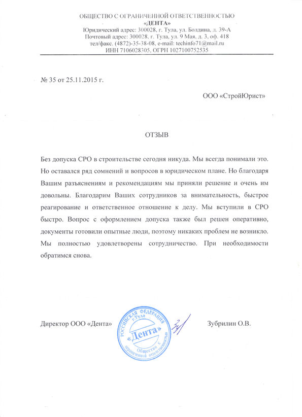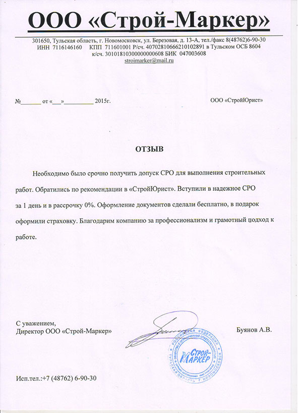 Отзывы клиентов "СтройЮрист" по вступлению в СРО в Анапе