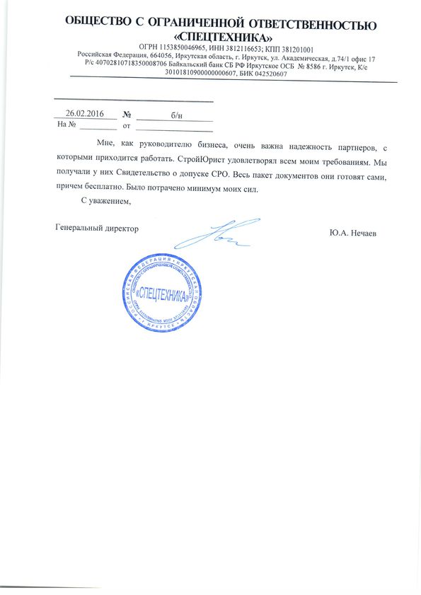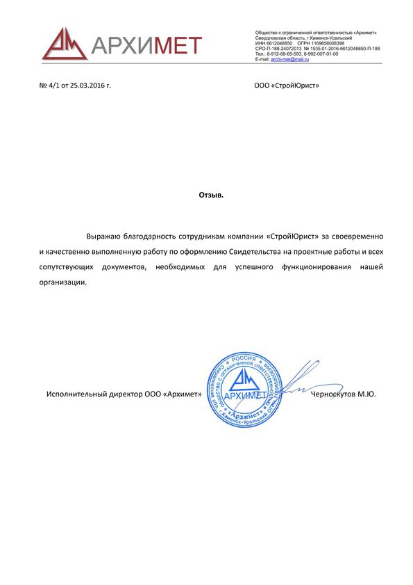 Отзывы клиентов "СтройЮрист" по вступлению в СРО в Анапе