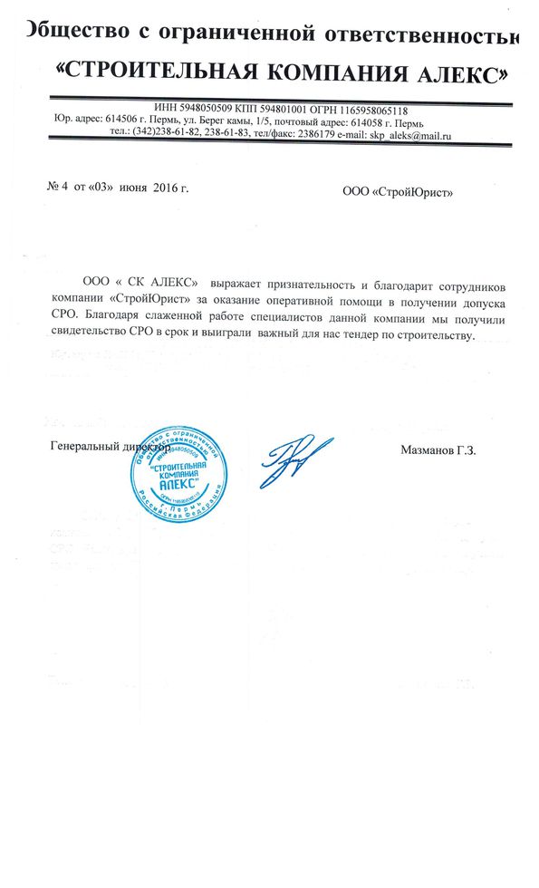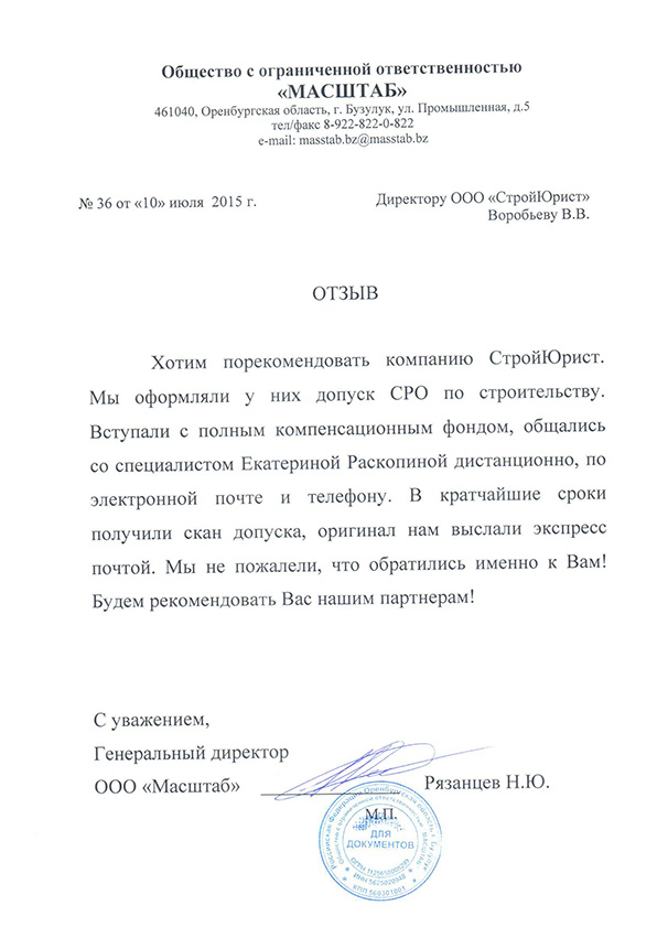 Отзывы клиентов "СтройЮрист" по вступлению в СРО в Анапе