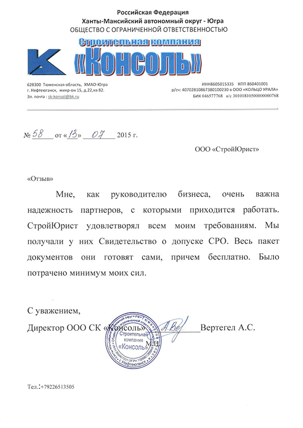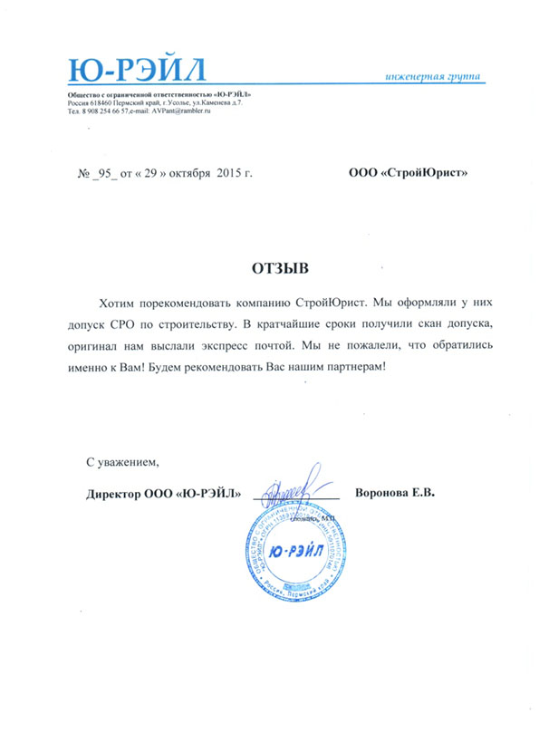 Отзывы клиентов "СтройЮрист" по вступлению в СРО в Анапе