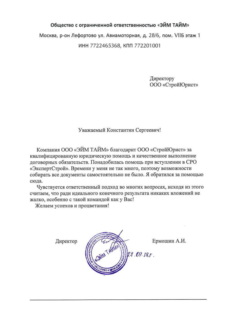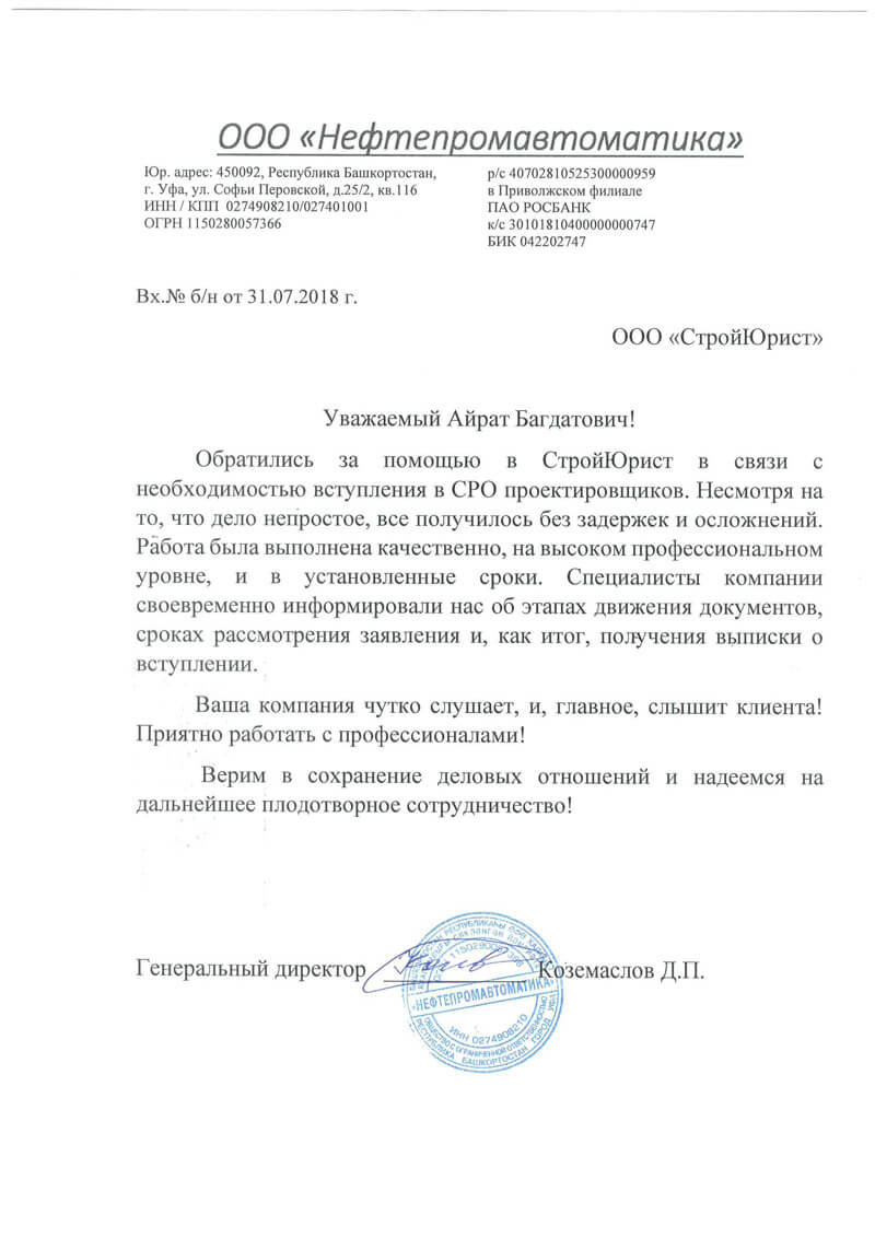 Отзывы клиентов "СтройЮрист" по вступлению в СРО в Анапе
