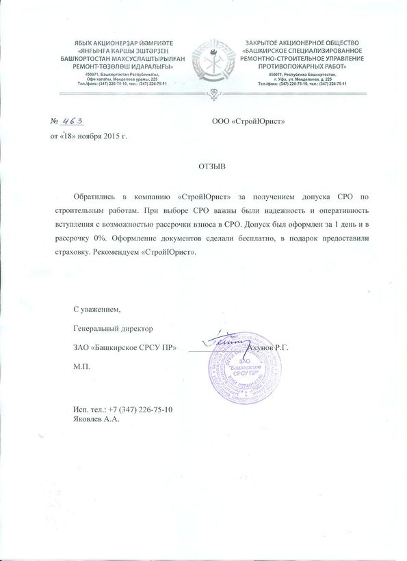 Отзывы клиентов "СтройЮрист" по вступлению в СРО в Анапе