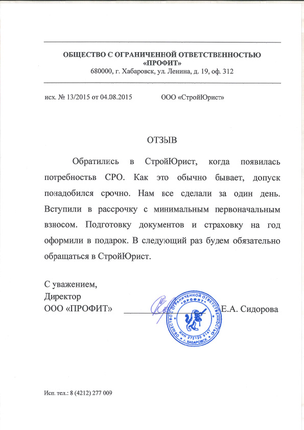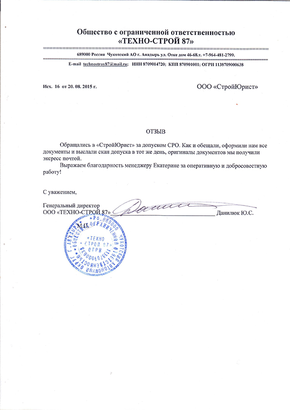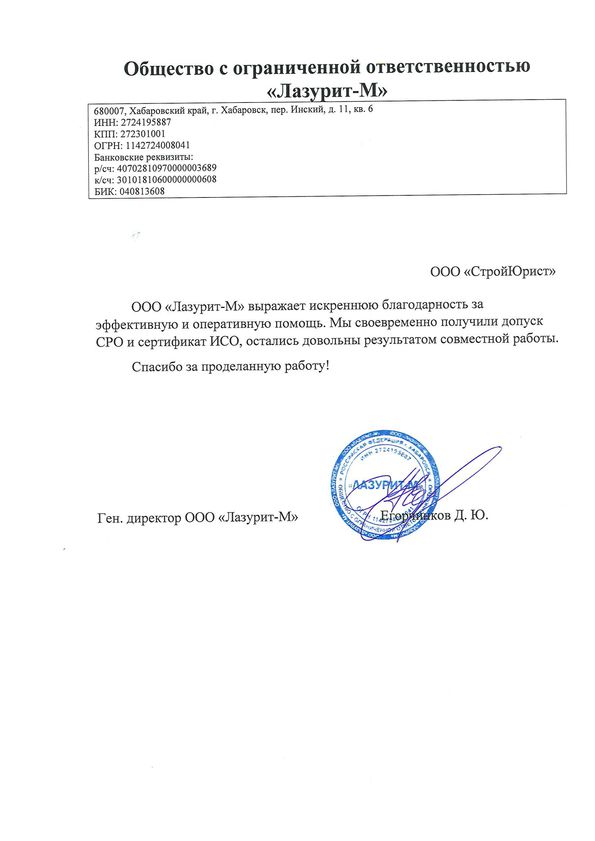 Отзывы клиентов "СтройЮрист" по вступлению в СРО в Анапе