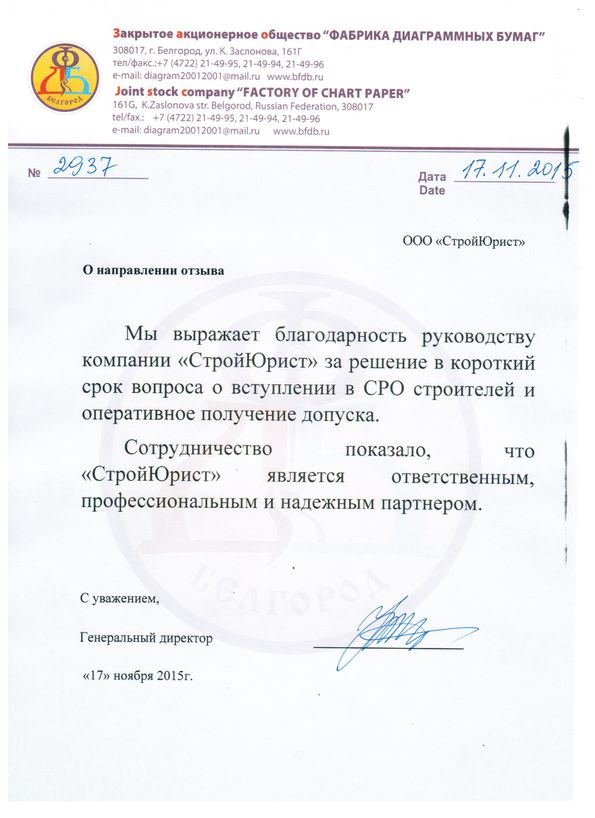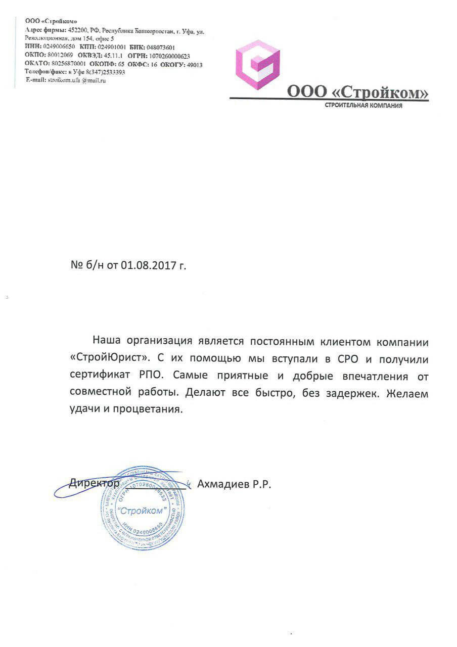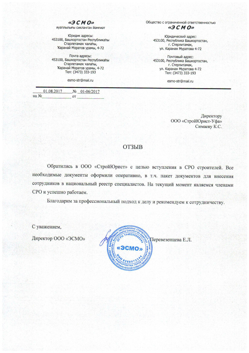 Отзывы клиентов "СтройЮрист" по вступлению в СРО в Анапе