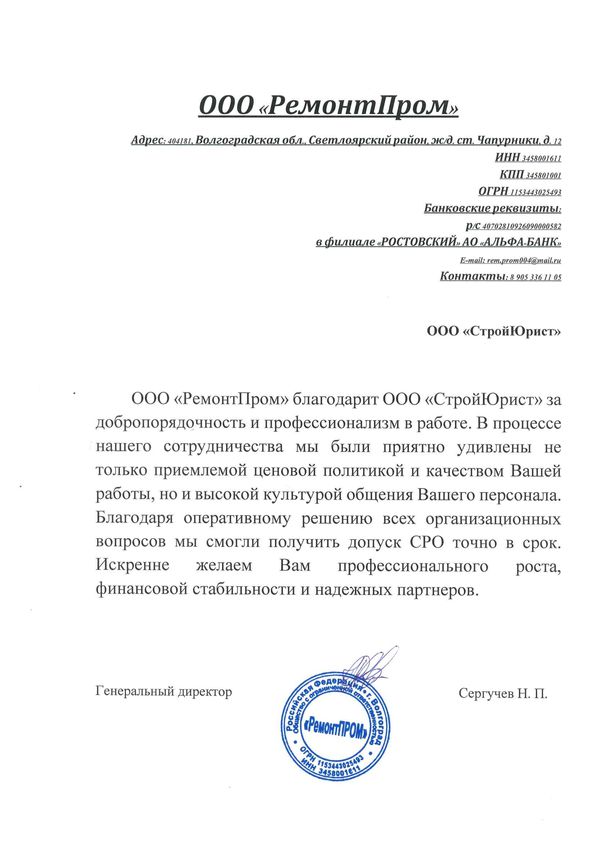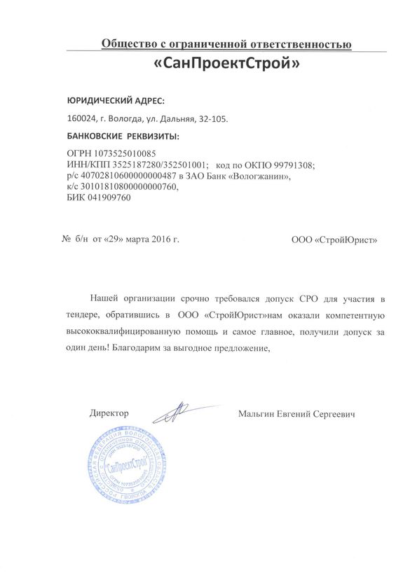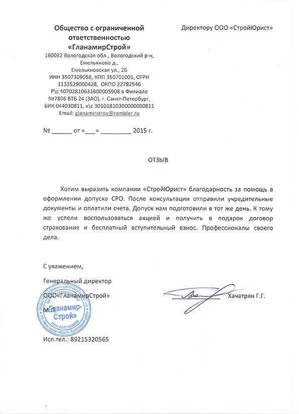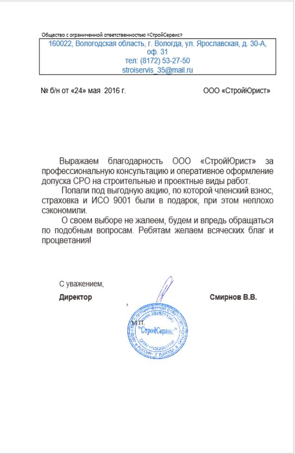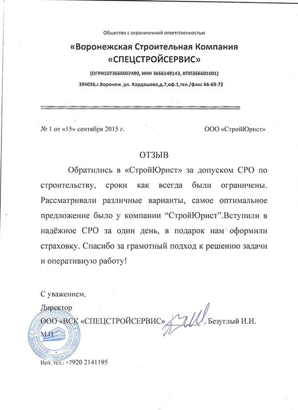 Отзывы клиентов "СтройЮрист" по вступлению в СРО в Анапе